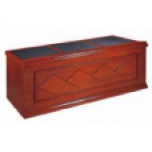 1、贴面材料:采用进口实木皮,可采用美国大西洋牌胡桃高级木皮,实木皮饰面,厚度0.6mm;2、封边用材:美国白木或与贴面相同的进口实木木材;3、基材:采用高密度板,优质绿色环保产品,甲醛含量≤1.0mg/L密度≥760kg/m3,静曲张度≥ 51.2Mpa.4、油漆:面漆采用“大宝”PU聚脂漆,底漆采用PE不饱和树脂漆,符合环保要求。